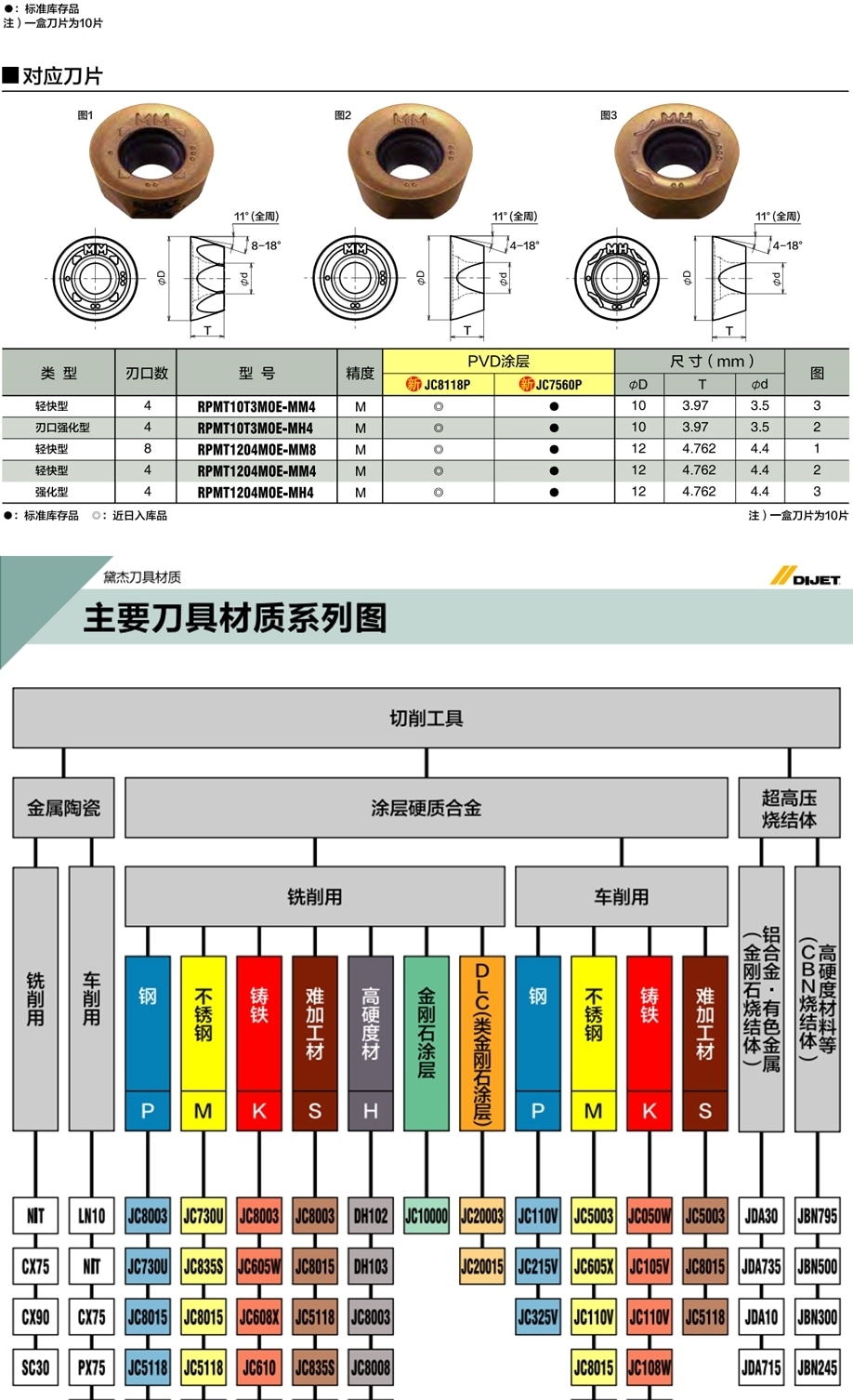 | RPMT10T3MOE(與三菱通用) | 圓形 | 11° | M | T | JC5218 | ¥ 12 |