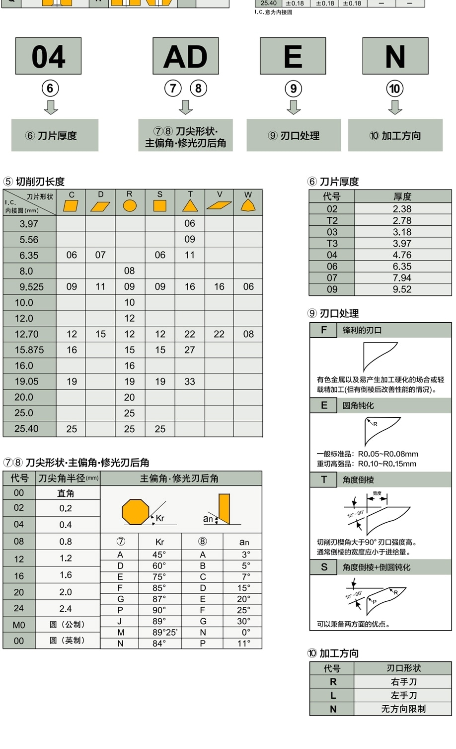 | 型號、貨號 | 刀片形狀 | 后角角度 | 精度代號 | 斷屑槽代號 | 材 質 | 價格 | 起訂(單位:件) | 操作 |