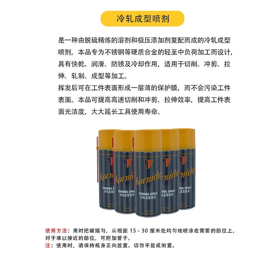 思誠(chéng)資源為您提供:KORNICHE比爾 冷軋成型噴劑 400mle的采購(gòu)報(bào)價(jià)、比爾(KORNICHE)Metal Forming Spray型號(hào)參數(shù)、規(guī)格圖片、PDF畫冊(cè)等資料,如您想了解更多關(guān)于比爾(KORNICHE)正品品牌的其他五金噴劑資料與產(chǎn)品貨期庫(kù)存、行情價(jià)格,就在思誠(chéng)資源MRO商城。