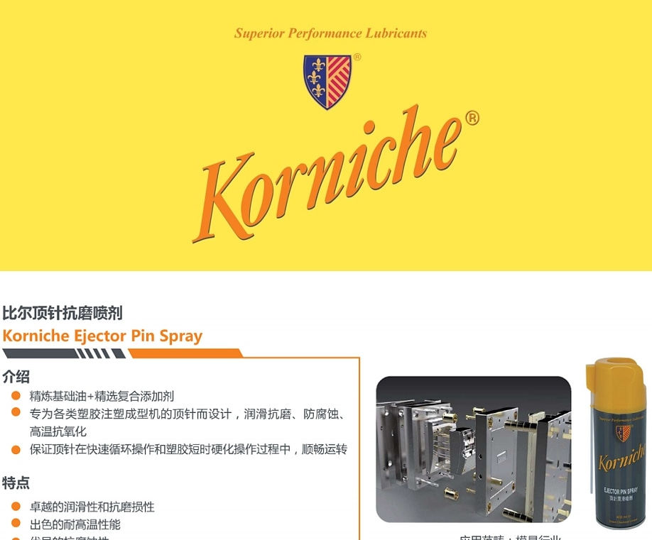 思誠資源為您提供:KORNICHE比爾 頂針抗磨特種潤滑噴劑 400mle的采購報價、比爾(KORNICHE)Ejector Pin Spray型號參數、規格圖片、PDF畫冊等資料,如您想了解更多關于比爾(KORNICHE)正品品牌的其他五金噴劑資料與產品貨期庫存、行情價格,就在思誠資源MRO商城。