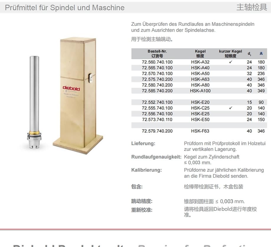 思誠資源為您提供:Diebold戴博 HSK系錐度主軸跳動檢棒 高精度主軸測試棒的采購報價、Diebold(戴博)Runout Test Arbors for HSK Spindles型號參數、規格圖片、PDF畫冊等資料,如您想了解更多關于Diebold(戴博)正品品牌的其他主軸檢具資料與產品貨期庫存、行情價格,就在思誠資源MRO商城。