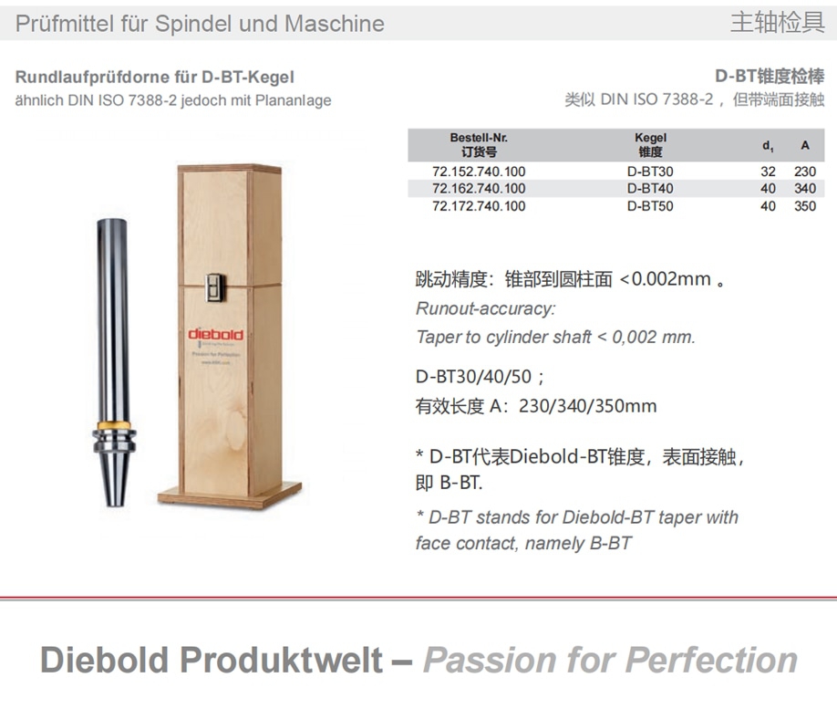 Diebold戴博 D-BT系錐度檢棒 端面接觸主軸