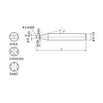 | 04-00700-03050 | 0.3 | R0.05 | 0.3 | 0.09 | 0.27 | 15° | 4 | 48 | 2 |