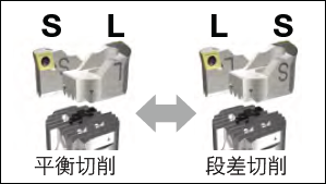 只需調換標準刀片座,即可對應平衡切削和段差切削。(盲孔用)