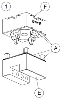 2-對準基準點(A)將轉接卡盤(F)