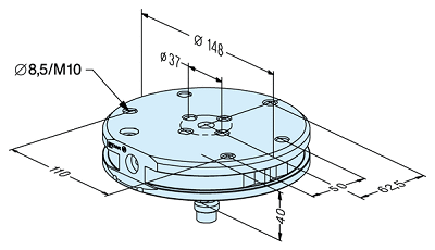 安裝:用M8螺釘穿過托板或用M10螺釘穿過坯料。